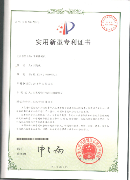 2016年5月25日我司自主创新研发的二座生产车间,共向国家有关部门申请了13项发明专利,目前已收到获批有8项发明专利。